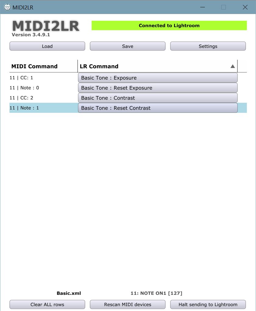 Teď můžeme panel pluginu zminimalizovat aby na obrazovce nepřekážel (nesmíme ho zavřít křížkem, tím bychom plugin vypnuli). Můžeme si v Lightroomu otevřít nějakou fotku a zkusit, jak první dvě kolečka fungují. Takto si můžeme ručně nastavit vše, co potřebujeme, a nakonec to tlačítkem Save v panelu uložit. Ale je to práce "na dlouhé zimní večery", protože kontrolér Behringer má 8 koleček (které se navíc dají stisknout), jeden tahový prvek a 16 tlačítek. úplně vpravo má pak tlačítka Layer A a B, kterými se počet prvků zdvojnásobí (po přepnutí do Layeru B získává každý prvek novou funkci), takže dohromady bychom takto museli nastavit přes 60 příkazů. A to nemluvím o tom, že k ovládacím prvkům lze přiřadit i důmyslnější akce než jen pouhé tahání táhly v Lightroomu. Například lze aplikovat libovolné klávesové zkratky, lze volit předpřipravené Presety, vykonávat posloupnosti příkazů nebo si třeba vytvořit další virtuální Layery kontroléru. Takže potřebných nastavení ve skutečnosti nejsou desítky, ale jde to do stovek. Naštěstí existují uživatelé, kteří si odladili velmi dobře promyšlená nastavení a nabízí je ke stažení dalším uživatelům.
