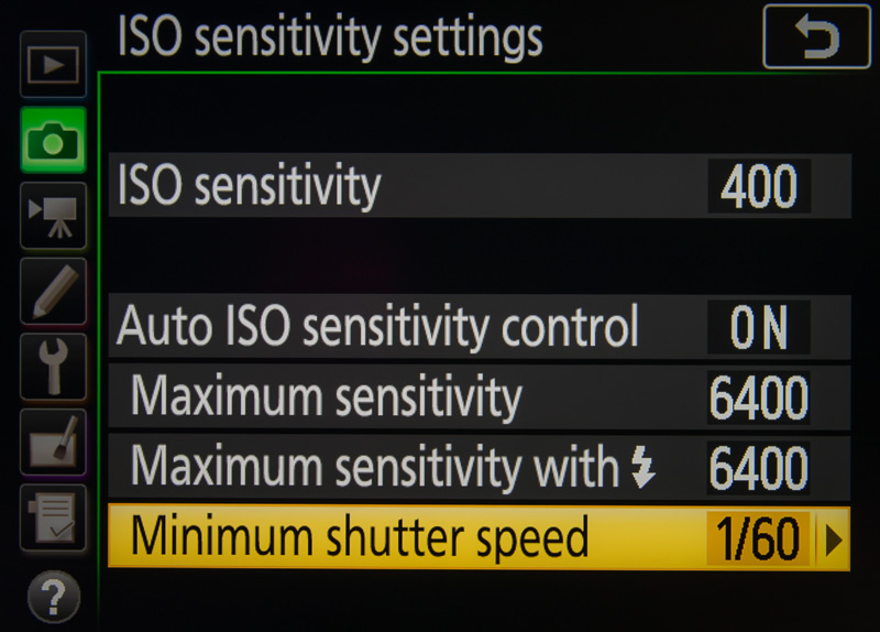 Ale co s dlouhými zoomy? To máme po každém zazoomování přenastavovat v auto ISO čas závěrky? No to bychom toho moc nenafotili. Proto má Nikon (a pravděpodobně i jiné značky fotoaparátů) možnost nastavení minimálního času závěrky na Auto.