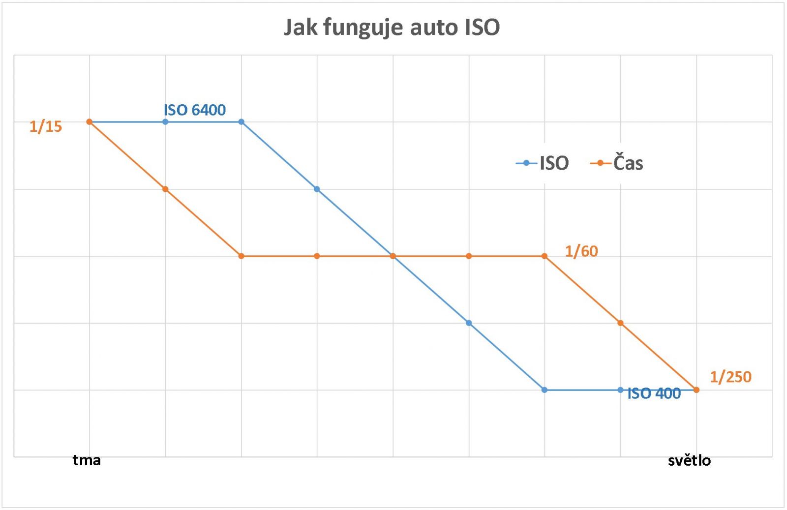 Jak se fotoaparát bude s tímto nastavením chovat ukazuje následující graf: